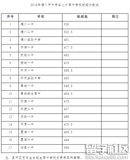 今年各高中学校统招录取分数线均较去年有所下降,德州一中与德州二中分数线相对持平。其中,德州一中为536分、德州二中为533.5分、德州市实验中学为491分。