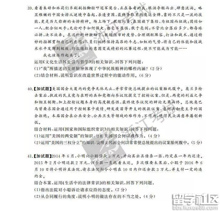 思想政治试题及答案推荐访问