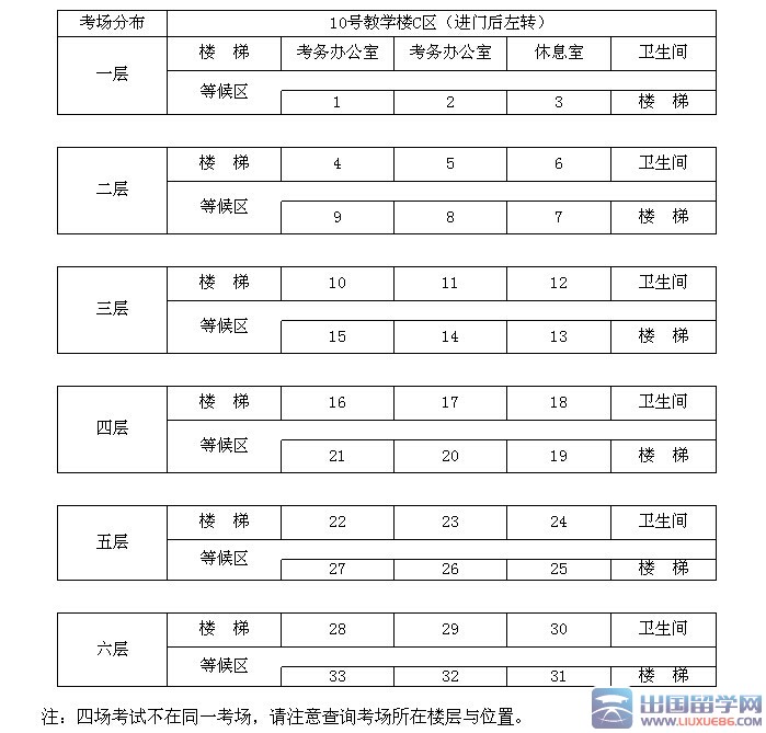 | 六层 | 第28考场—第33考场 |