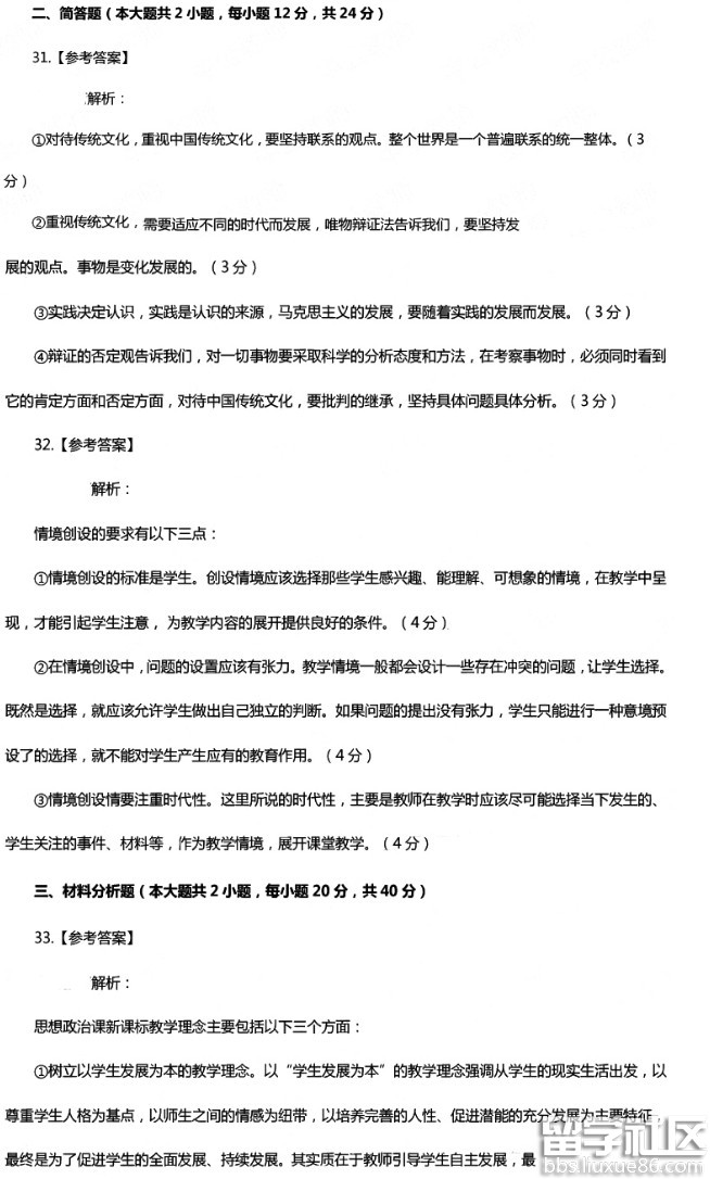 2016下半年教师资格证高中思想政治真题答案