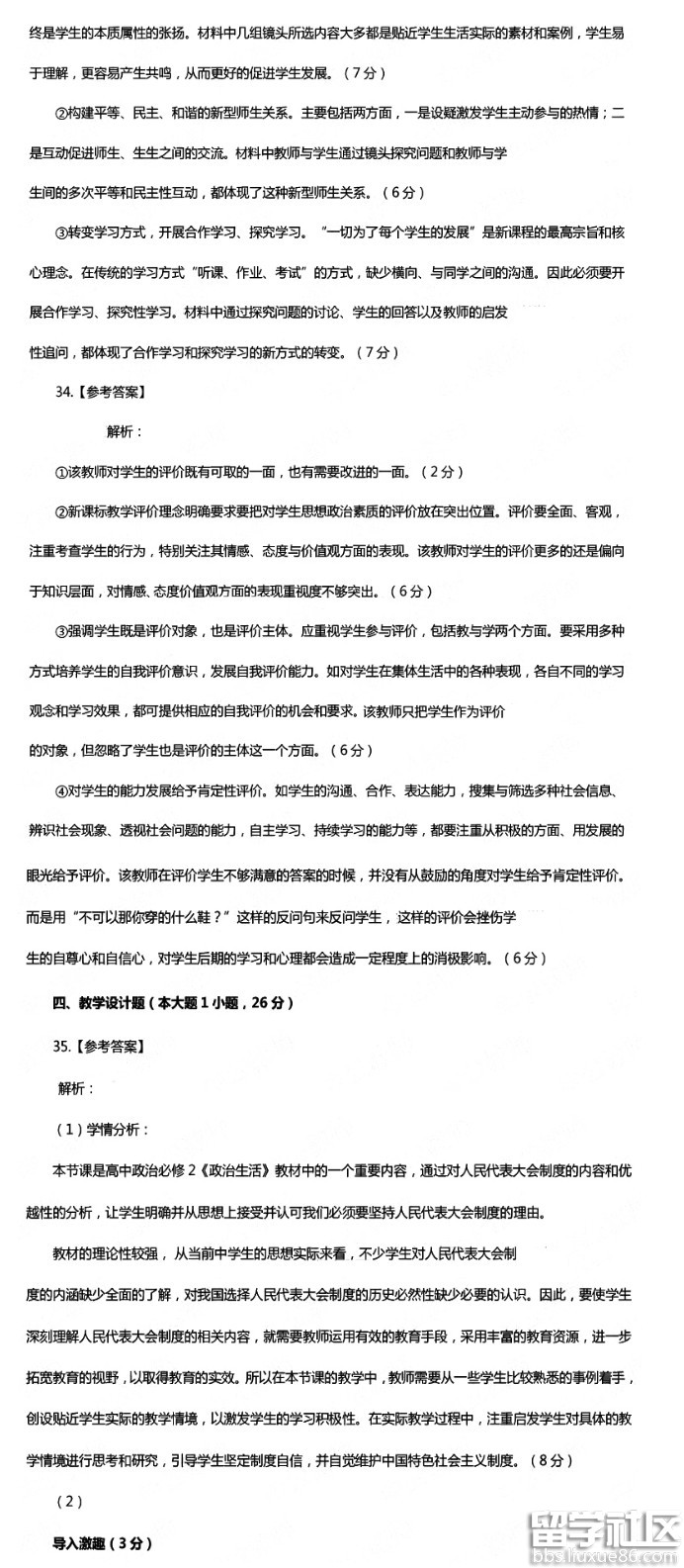教师资格证高中政治真题答案推荐访问