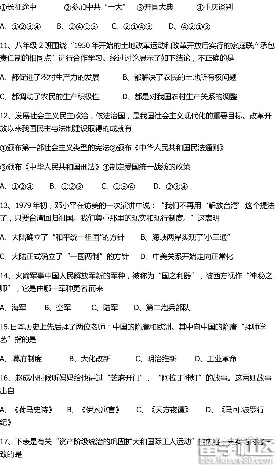 生时何必久睡,死后自会长眠。出国留学网中考频道第一时间为您公布株洲中考历史试题及答案(2017),希望对您有所帮助,欢迎您访问出国留学网浏览更多中考资讯,了解最新信息请按CTRL F5刷新页面。更多株洲中考分数线、株洲中考成绩查询、株洲中考志愿填报、株洲中考录取查询信息等信息请关注我们网站的更新!