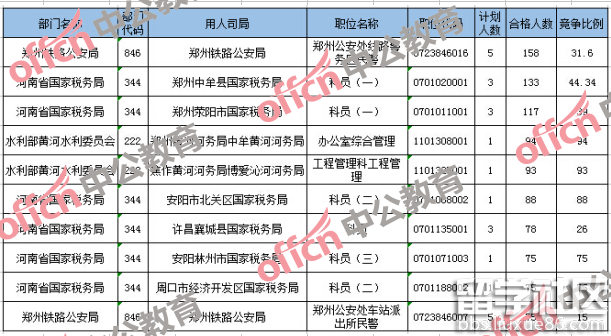 报名通过审核人数排名前列的职位主要集中在郑州铁路公安局、河南省国家税务局,水利部黄河水利委员会,具体信息如下: