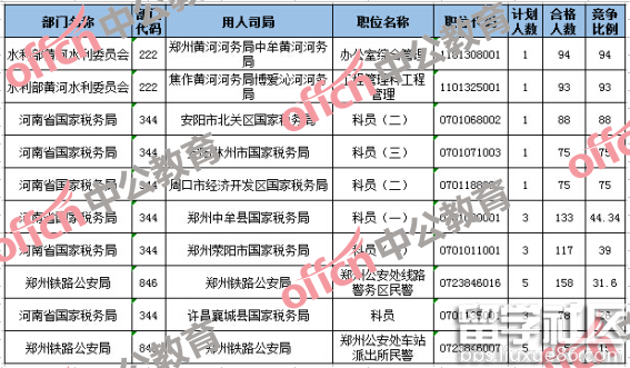 截止17日16时,招录比例最高的职位为郑州黄河河务局中牟黄河河务局办公室综合管理一职,招录1人,截止17日16时通过人数为94人。
