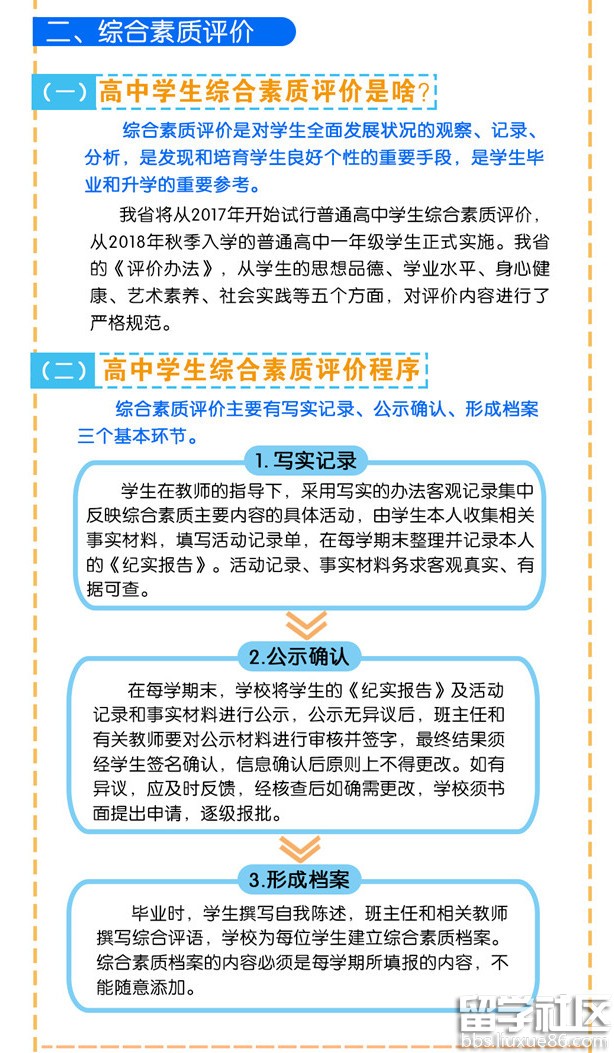 进一步规范高中学生综合素质评价。建立全省规范统一的高中学生综合素质档案,完善学生综合素质评价电子化管理平台,客观记录学生成长过程中的真实表现,确保程序严格、公开透明、内容真实可信。