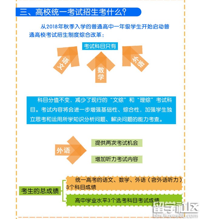 不分文理科,外语科目提供两次考试机会