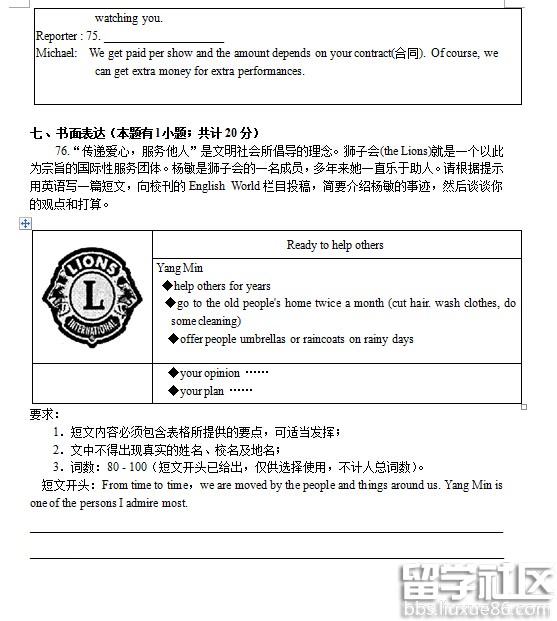2012年05月23日 亲,很高兴访问《浙江省宁波市2009届高三十校联考英语试题及参考答案》一文,也欢迎您访问出国留学(liuxue86.com)的高考频道,为您精心准备了2009高考外语日常练习的相关模拟考试试题内容!同时,我们正在加紧建设高考频道,我们全体编辑的努力全是为了您,希望您能在本次高考中能获得好的名次,以及考上满意的大学,也希望我们准备的《浙江省宁波市2009届高三十校联考英语试题及参考答案》内容能帮助到您。在即将到来的高考上助您一臂之力!加油,童鞋!