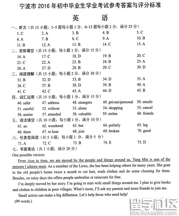 天道酬勤,曾经的每一分付出,必将收到百倍回报。下面是出国留学网中考栏目为大家准备的“浙江省宁波市2016年中考英语试题(含答案)”,希望能够帮到大家!更多中考资讯请关注本站!