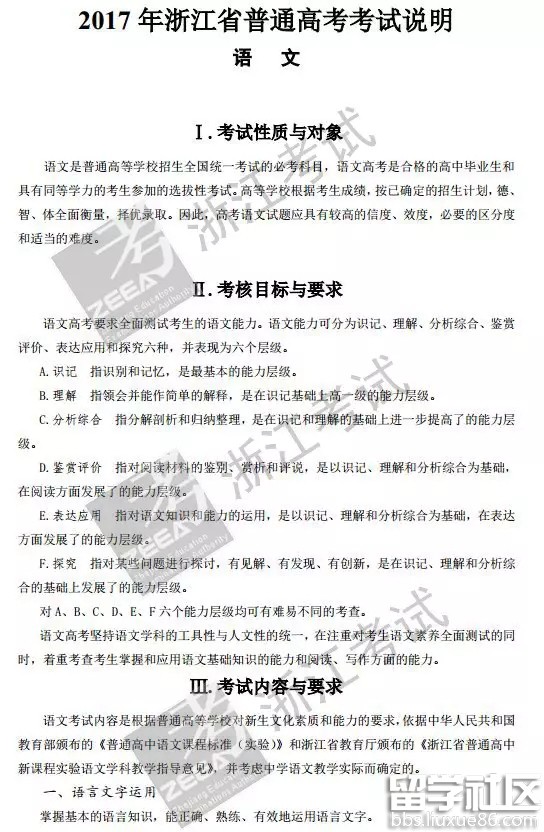 出国留学高考网为大家提供2017浙江新高考语文考试说明,更多高考资讯请关注我们网站的更新!