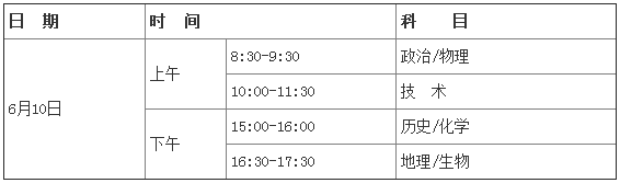 2015年海南省高考考试科目及时间安排