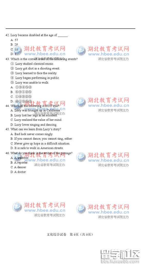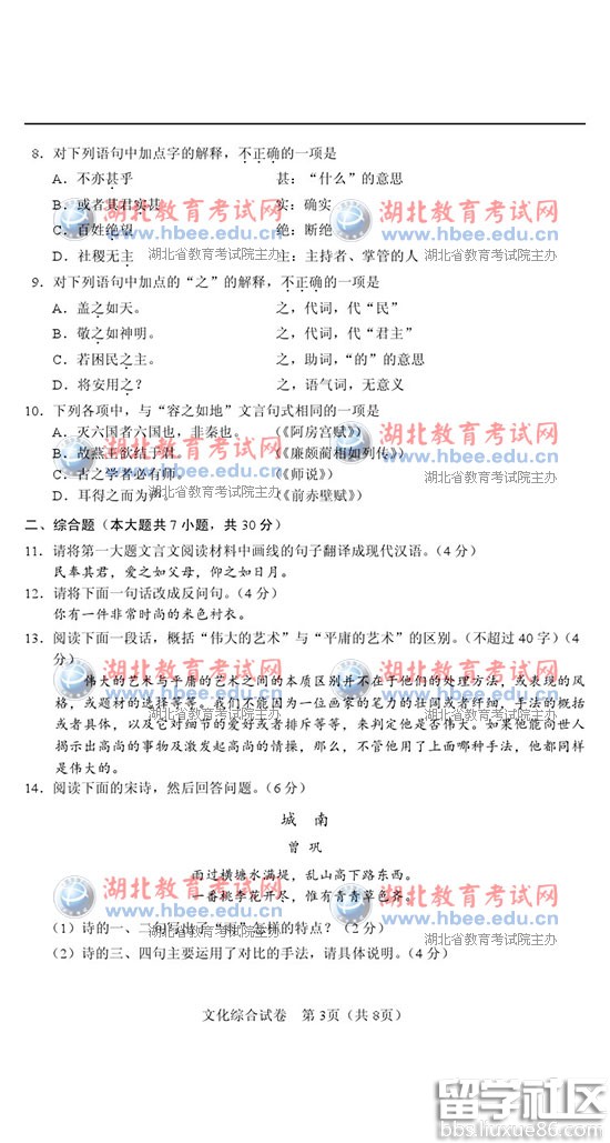 无论是高考是成功还是失败,我们终究要面对现实,但是我们要有一颗永不言败的心,加油!本文“2016年湖北技能高考文化综合试卷及答案”由出国留学网高考栏目整理而出,希望对您有所帮助!