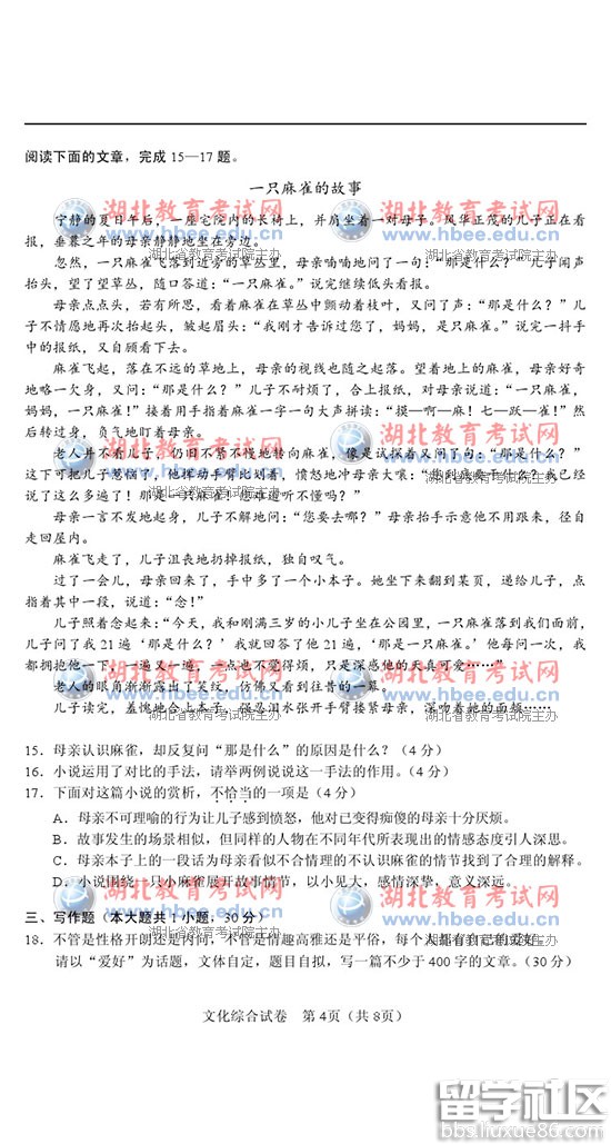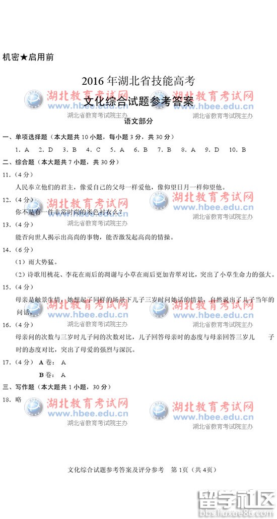 出国留学网专题频道湖北技能高考文化综合答案栏目,提供与湖北技能高考文化综合答案相关的所有资讯,希望我们所做的能让您感到满意!