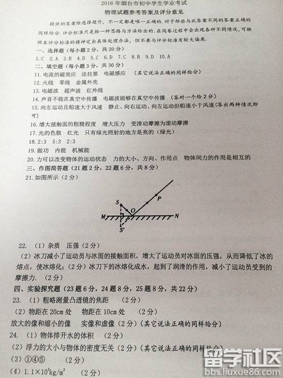 下面是由出国留学网整理的2016年山东省烟台市中考物理试卷及答案,欢迎阅读。