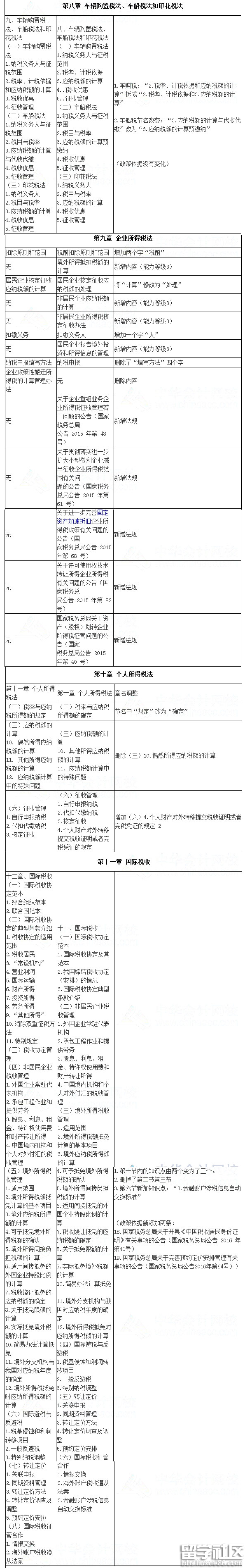 2016注册会计师《税法》考试大纲变化