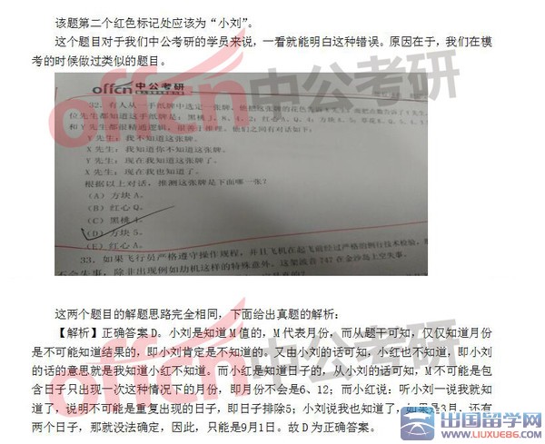 出国留学网第一时间解析真题发现,逻辑试题最后一道题居然出现错误,希望这种错误不会给广大考生答题产生影响,原题如下图所示: