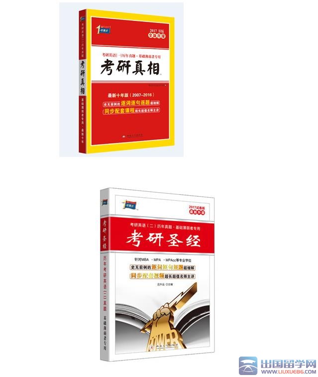 【考研1号】真题《考研真相》和《考研圣经》,《考研真相》是英语(一)真题,《考研圣经》是英语二真题,两本书都是逐词逐句精讲的,还有配套精讲视频,特别适合基础一般的考生。