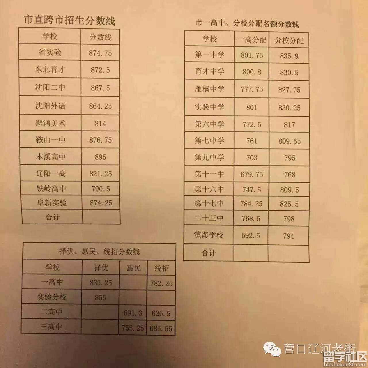 2016营口中考分数线公布,2016营口一高中、辽宁省实验中学营口分校、二高中、三高中录取分数线