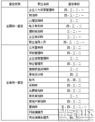 二、鉴定职业及级别