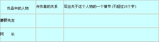 8.《藤野先生》《阿长与<山海经>》都出自散文集《朝花夕拾》,请你任选一篇,按要求填写表格。(3分)