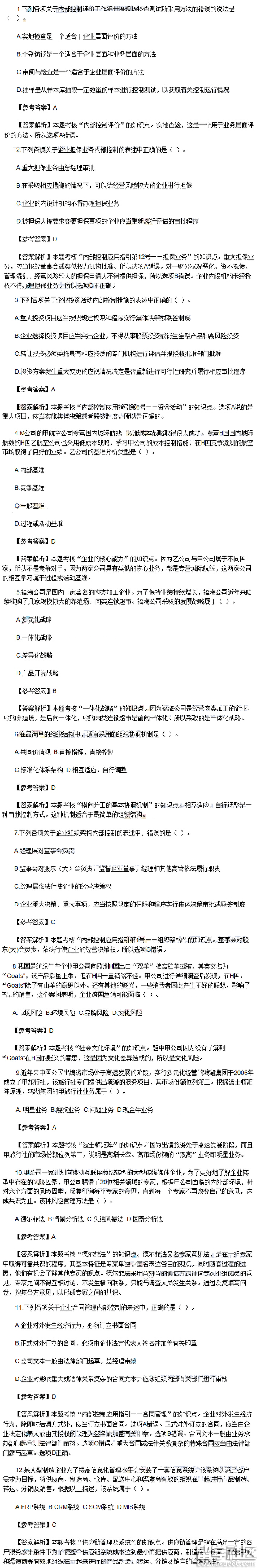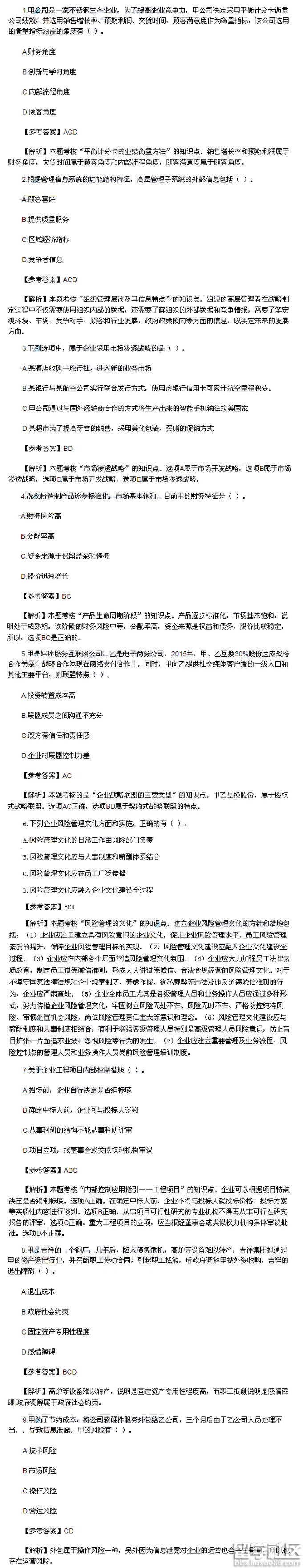| 注册会计师2016公司战略与风险管理真题及答案汇总 |
